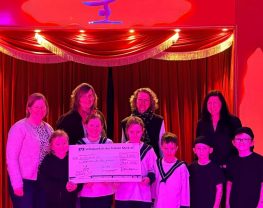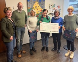 Die 4 Damen übergeben den Spendencheck in Höhe von 1.000 € an die Vertreter der Reken-Stiftung. Anne Schulze Sievert organisiert …