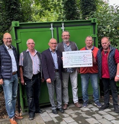 Bisher wurden die Gerätschaften zum Reinigen der Kriegsgräber auf dem Friedhof in Maria Veen bei einem Vorstandsmitglied der Kameradschaft gelagert. Nunmehr konnte mit Unterstützung der Reken-Stiftung in Höhe von 1.200 € ein Materialcontainer zur Lagerung von Schaufeln, Besen, Schubkarren, Heckenscheren etc. angeschafft werden. Der Container steht auf dem Friedhof neben dem Grünabfallcontainer in der Nähe der Kriegsgräber. In seinem „grün“ fügt er sich perfekt unter den Bäumen ein.